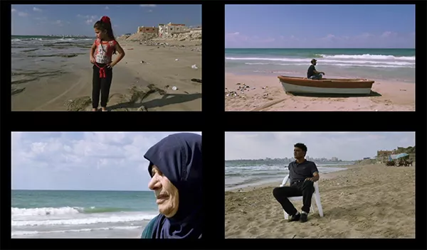 In Camp Pause, visitors are invited to watch and listen to the stories of four residents of the Rashidieh Refugee Camp in Lebanon, where Palestinian refugees have lived since 1963. The installation, on view in the Rare Book Room of Canaday Library until December 14, surrounds visitors on four sides with simultaneously projected videos. Visitors can select from the projections, put on headphones, and listen to the voice of a resident, recounting personal observations of life in the camp. As viewers, we encounter the subjects in their homes before accompanying them to the nearby sea that borders the camp as much as the military checkpoints that surround them.