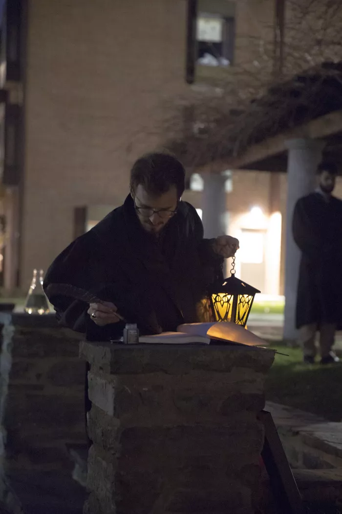 On November 19th, graduate students from each department of the Graduate School of Arts and Sciences donned academic robes and gathered for a chilly dusk ceremony in Bryn Mawr’s Sunken Garden. Their presence was to celebrate the inauguration of Lux Doctorum, a new Bryn Mawr tradition specific to graduate students in Archaeology, Chemistry, Classics, History of Art, Mathematics, and Physics.
