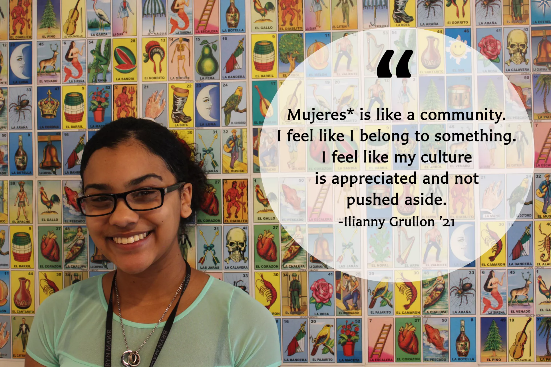 Student-run clubs and organizations are at the heart of Bryn Mawr's on-campus community. Click on the thumbnails below to read what members of Mujeres* have to say about the importance of the group in their life.